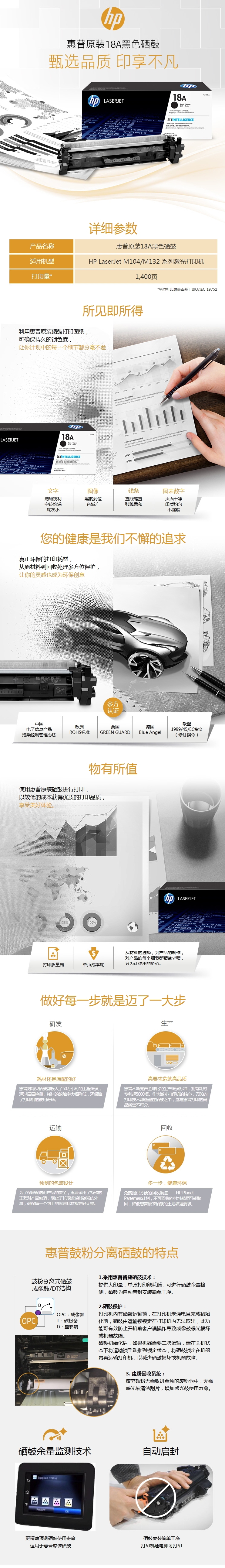 • 商品名稱:惠普(HP) CF218A 18A黑色硒鼓 適用于M104a/M104w/M132a/M132nw/M132fn/M132fp/M132fw
