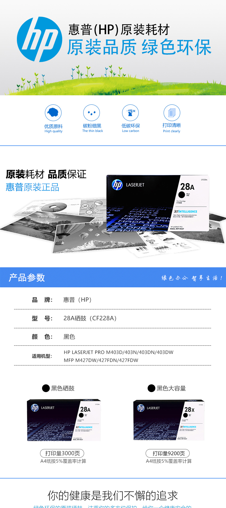 • 商品名稱(chēng):惠普(HP) CF228A 28A黑色硒鼓 適用于M403/M427