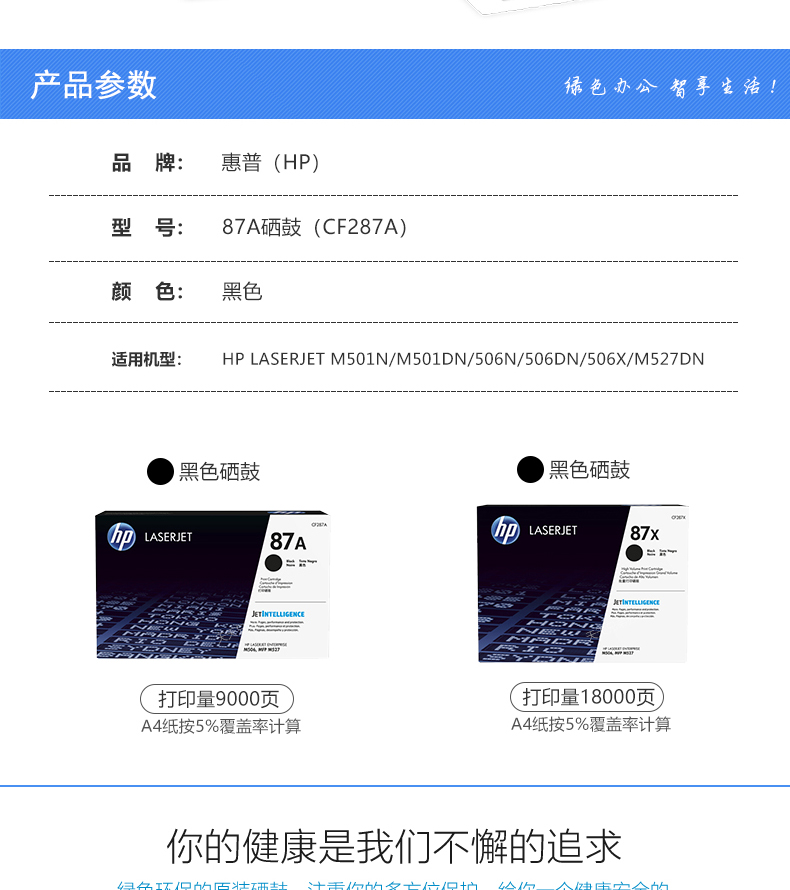惠普(HP) CF287A黑色硒鼓 適用于M506/M527 87A