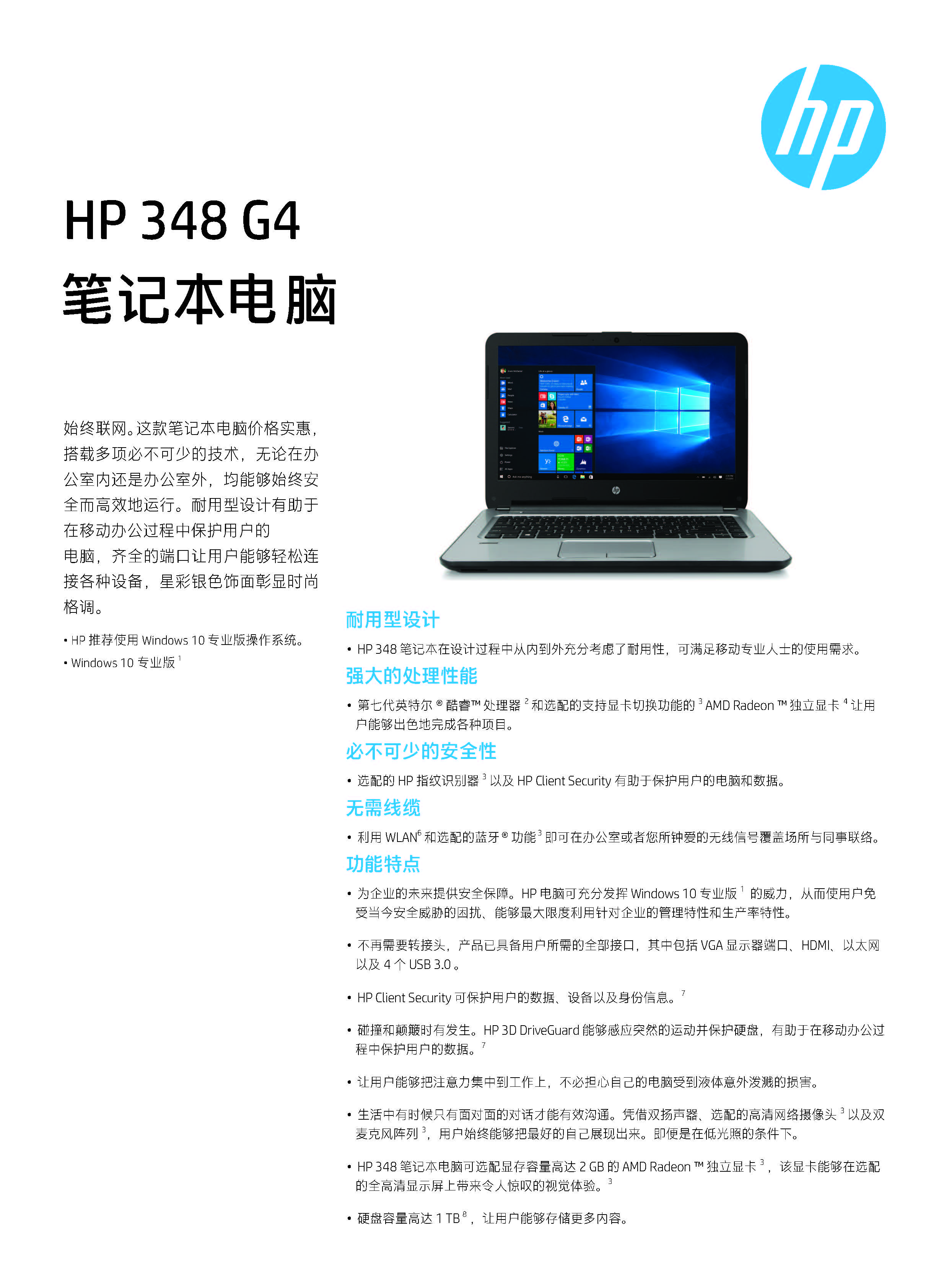 惠普 (HP) 348 G4 14寸便攜式商務(wù)筆記本 i7-8550U 8G 256GSSD 2G獨(dú)顯 DVDRW DOS 一年保修 大客戶優(yōu)先管理服務(wù)/內(nèi)置DVDRW/無(wú)線藍(lán)牙