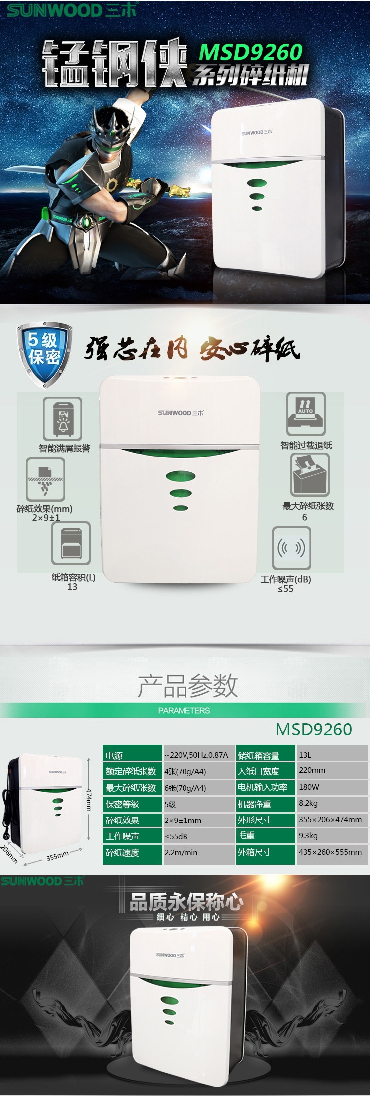三木(SUNWOOD)錳鋼俠碎紙機(jī)MSD9260