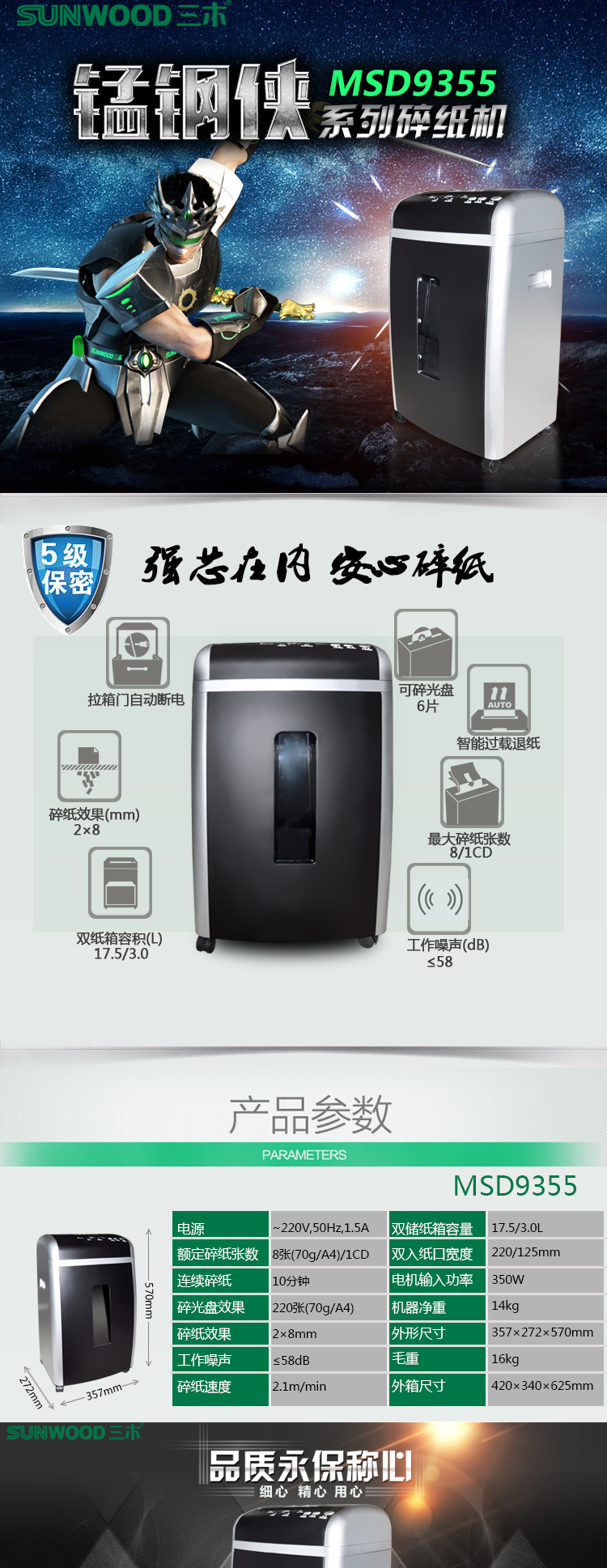 三木(SUNWOOD)錳鋼俠碎紙機(jī)MSD9355