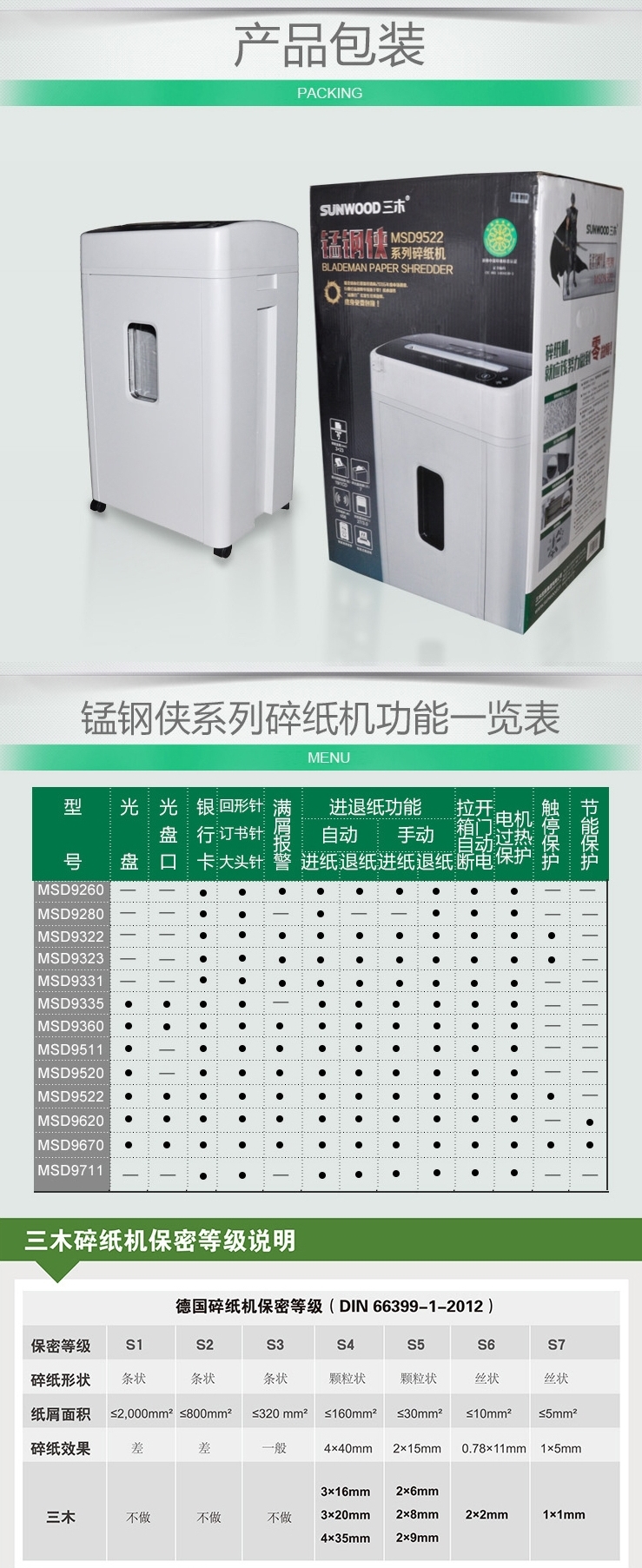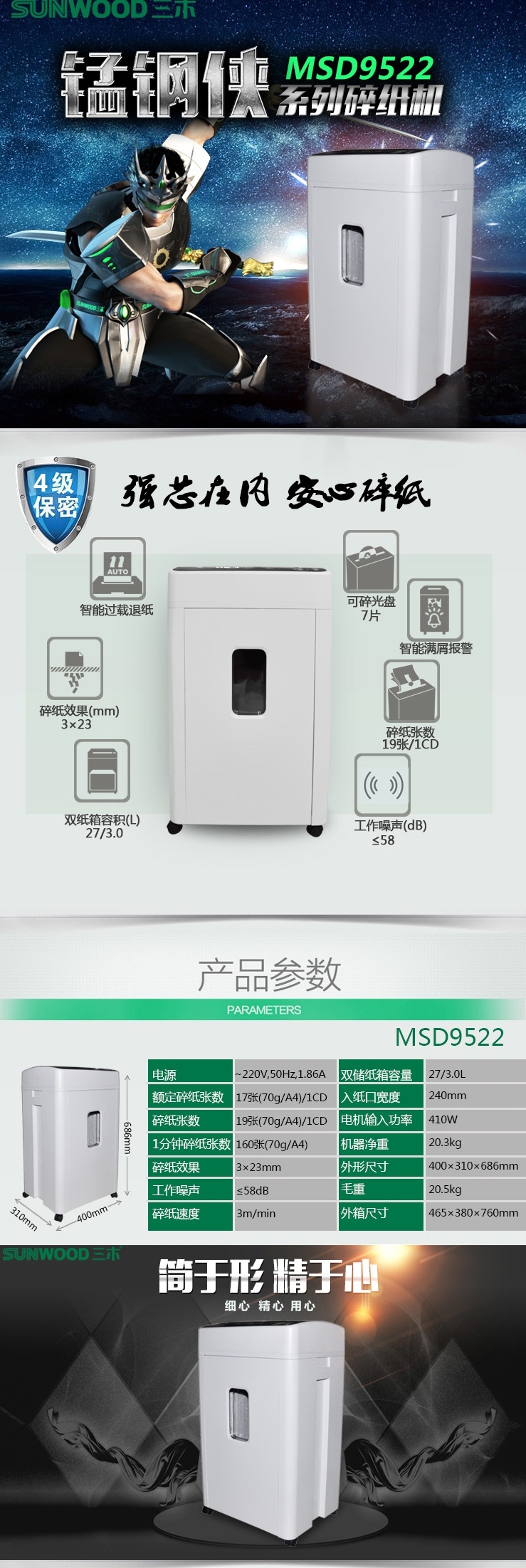 三木(SUNWOOD)錳鋼俠碎紙機MSD9522