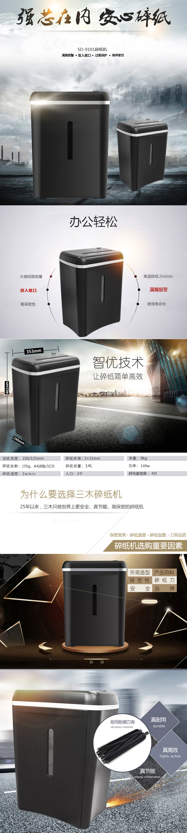 • 規(guī)格:SD9101經(jīng)濟性碎紙機