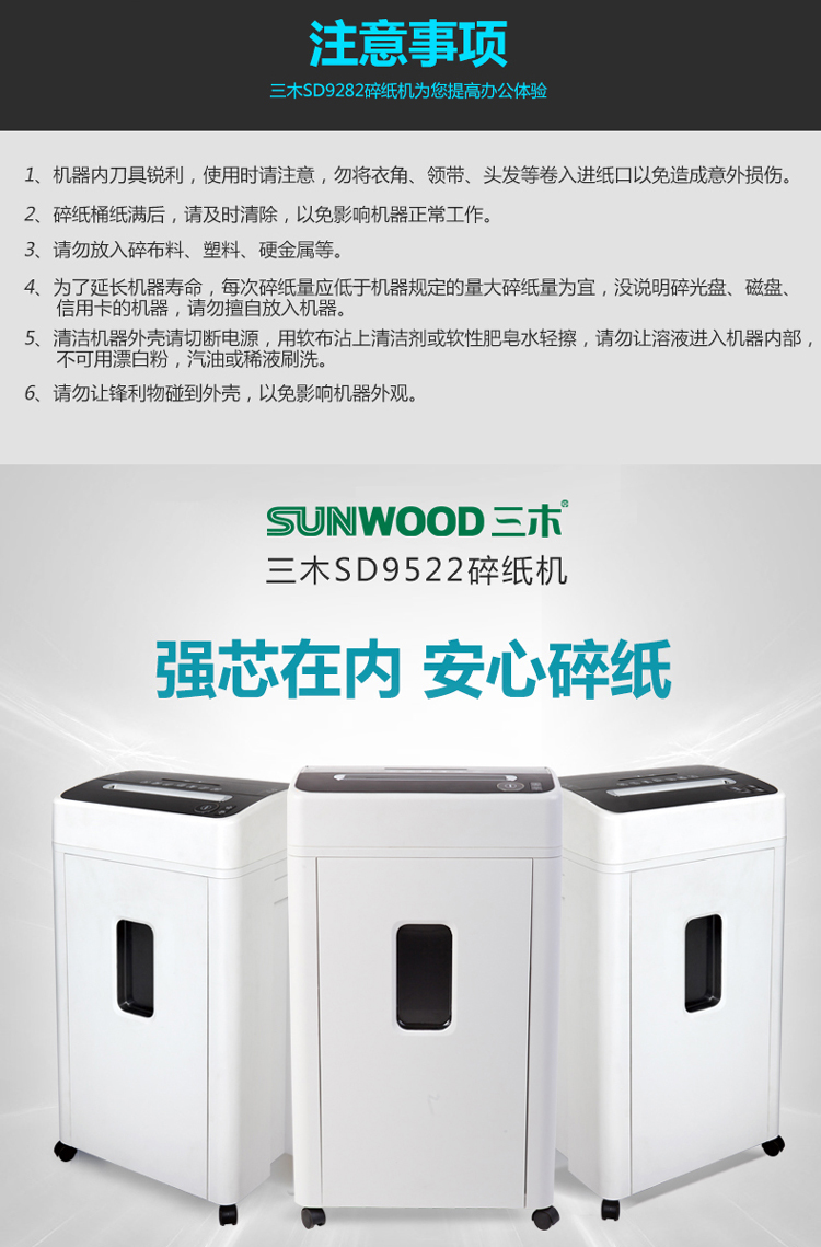 • 商品名稱:三木(SUNWOOD) MSD9522碎紙機(jī) 4級保密 觸停保護(hù) 高效靜音 雙入口 可碎釘/卡/光盤