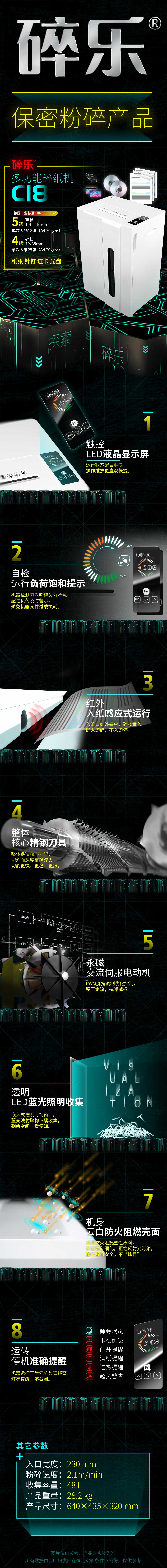 - 商品名稱:碎樂(lè)(Ceiro) 4級(jí)保密碎紙機(jī)C18 單次粉碎25張 可碎卡/光盤/書釘