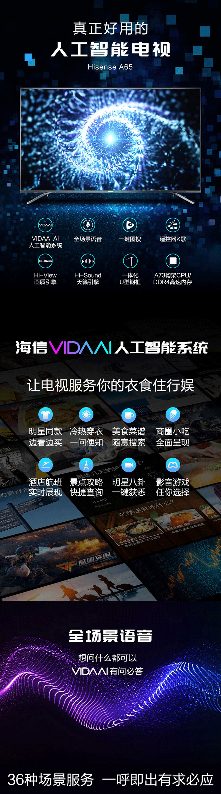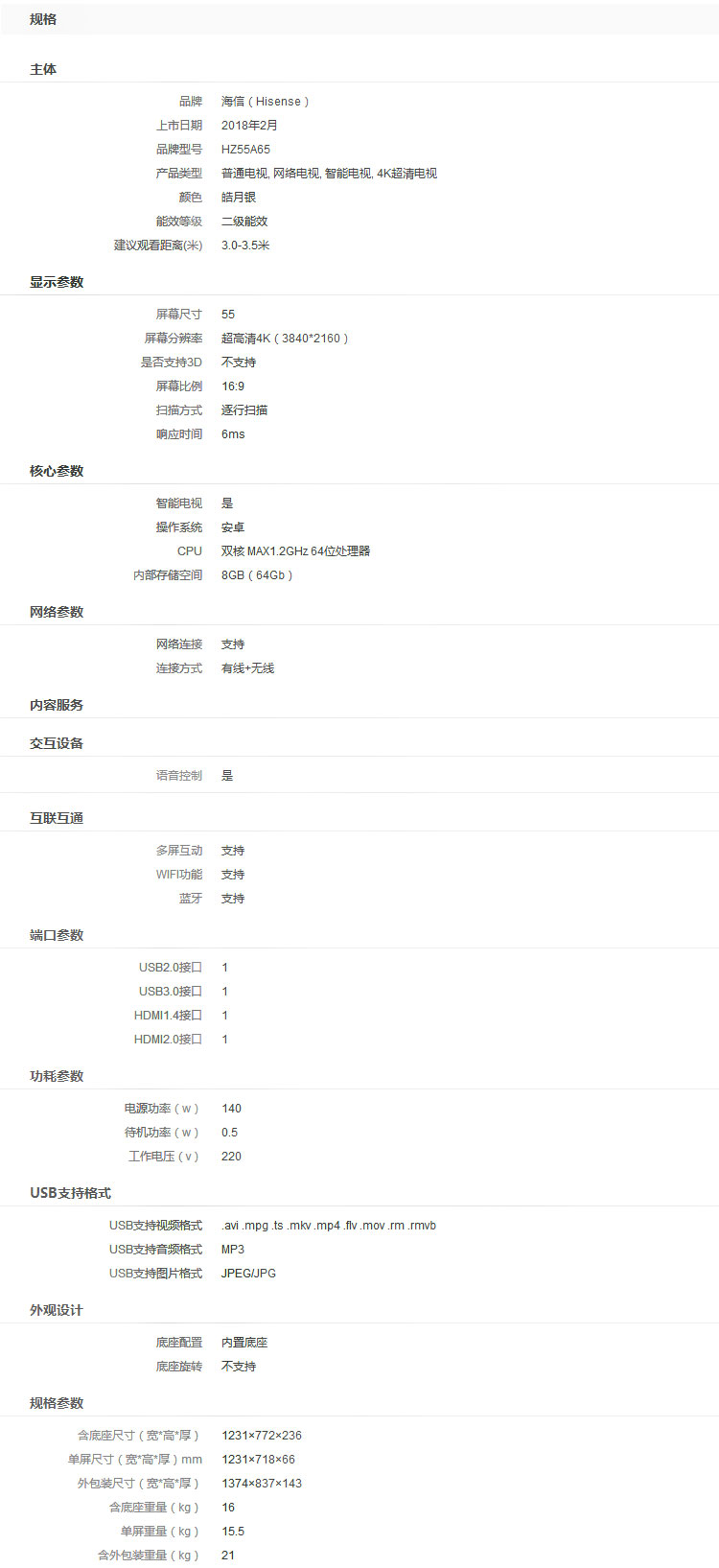 • 商品名稱:海信(Hisense)55寸4K智能電視機HZ55A65