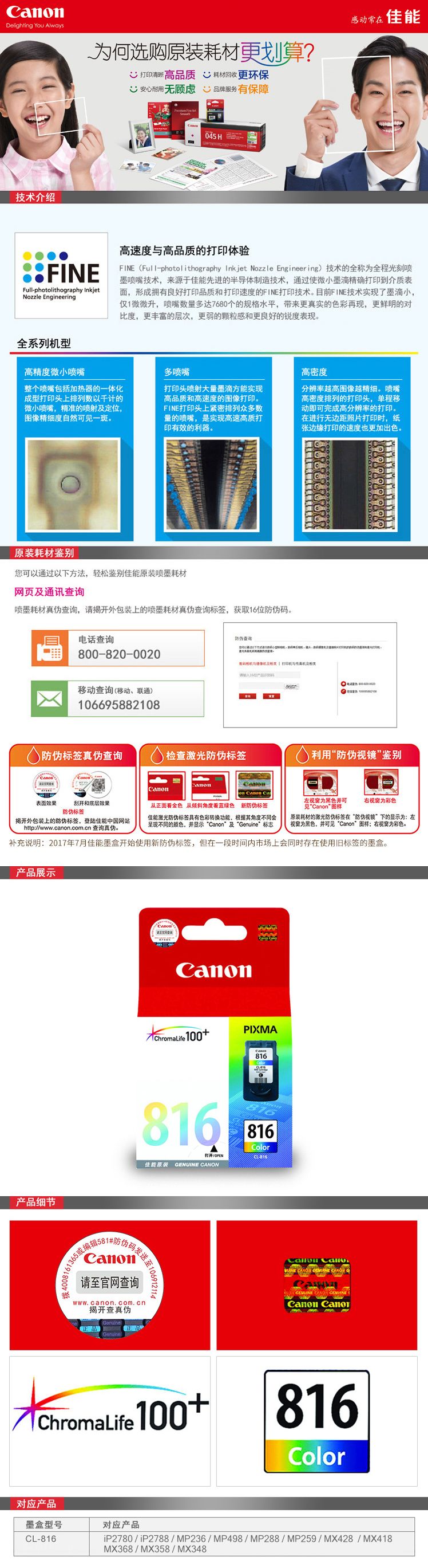 • 商品名稱:佳能(Canon)CL-816 彩色墨盒 適用于iP2780、iP2788、MP236、MP288