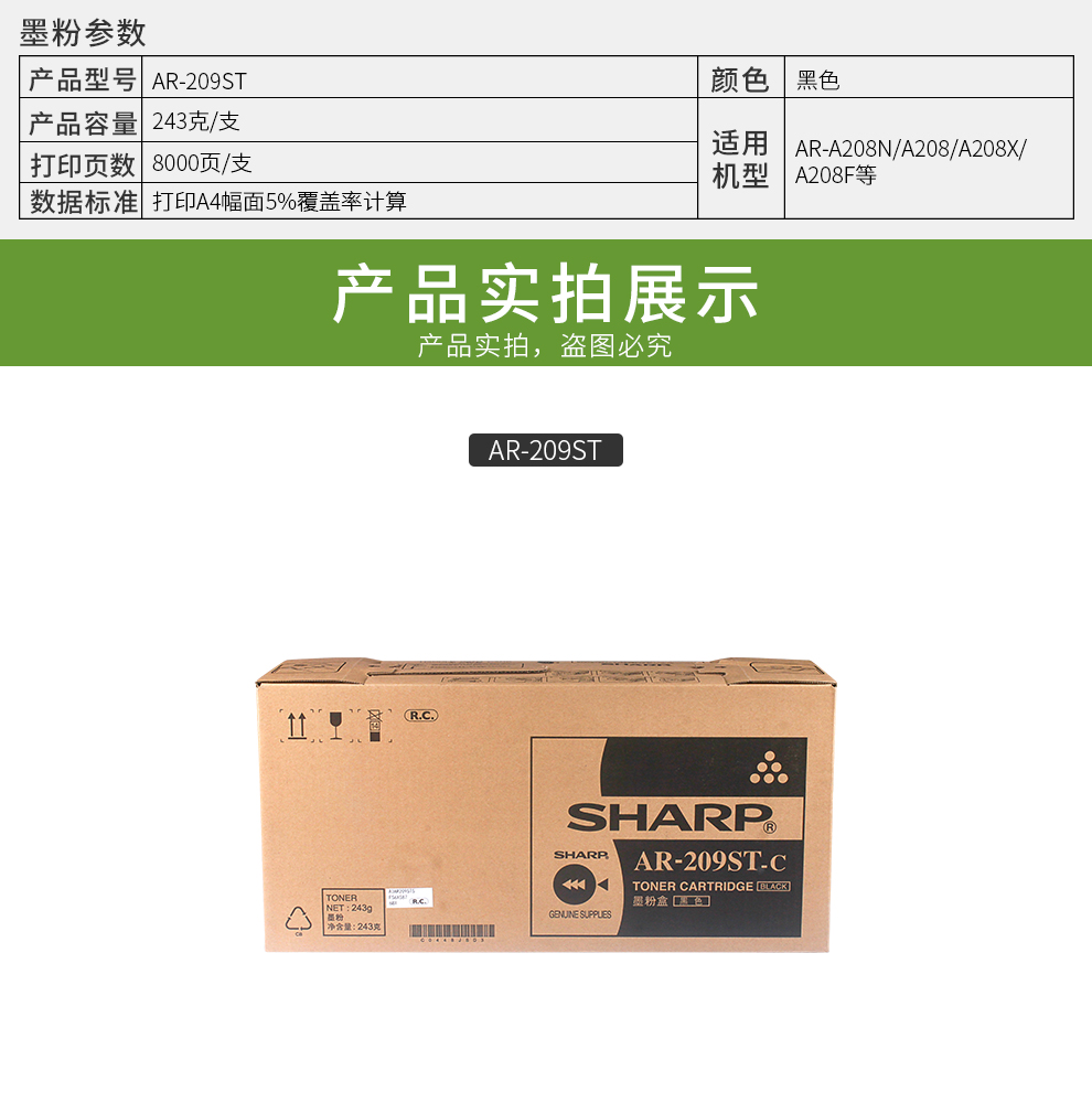 • 商品名稱:夏普(SHARP)AR-209ST粉盒 適用于AR-A208N/A208/A208X/A208F