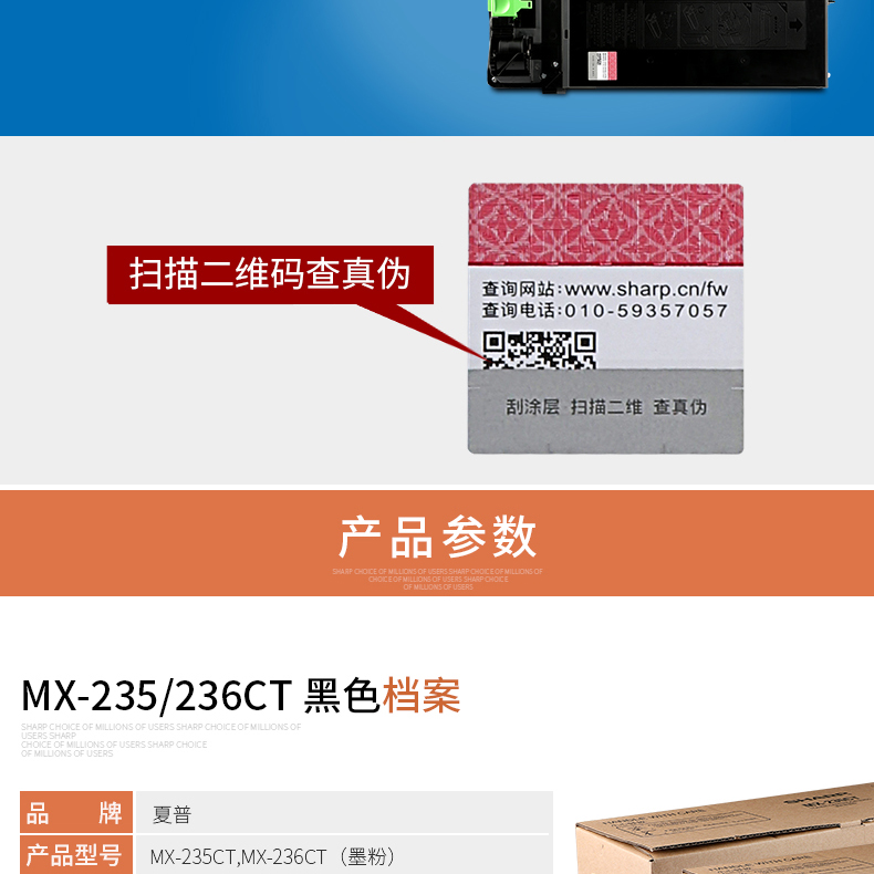• 商品名稱:夏普(SHARP)MX-235CT碳粉 適用于AR-1808S/2008/2308/2035/2328/2035/MX-M2028/M2308