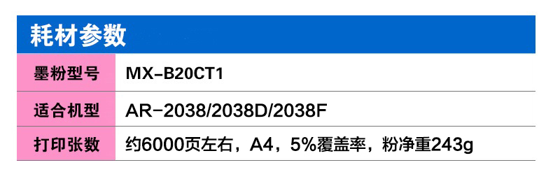 • 商品名稱:夏普(SHARP)MX-B20CT1粉盒 適用于AR-2038/2038D/2038F