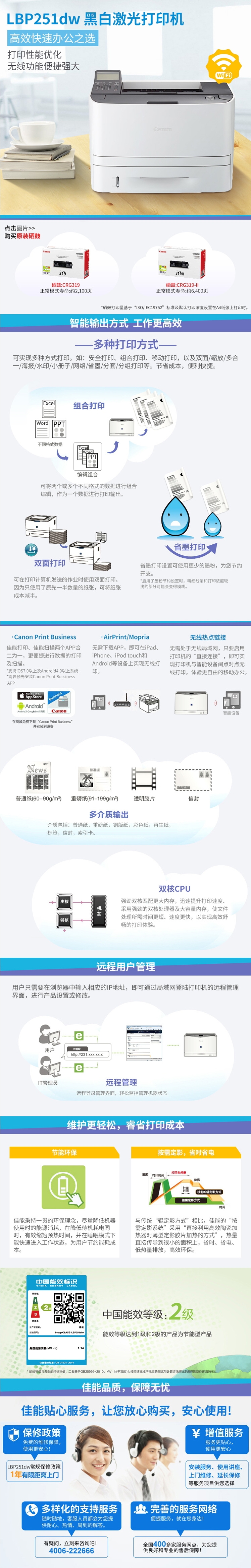 • 商品名稱:佳能(Canon)LBP 251dw imageCLASS 黑白激光打印機