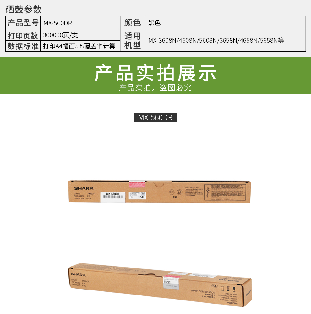 • 商品名稱:夏普(SHARP)MX-560DR鼓芯 適用于MX-3608N/4608N/5608N/3658N/4658N