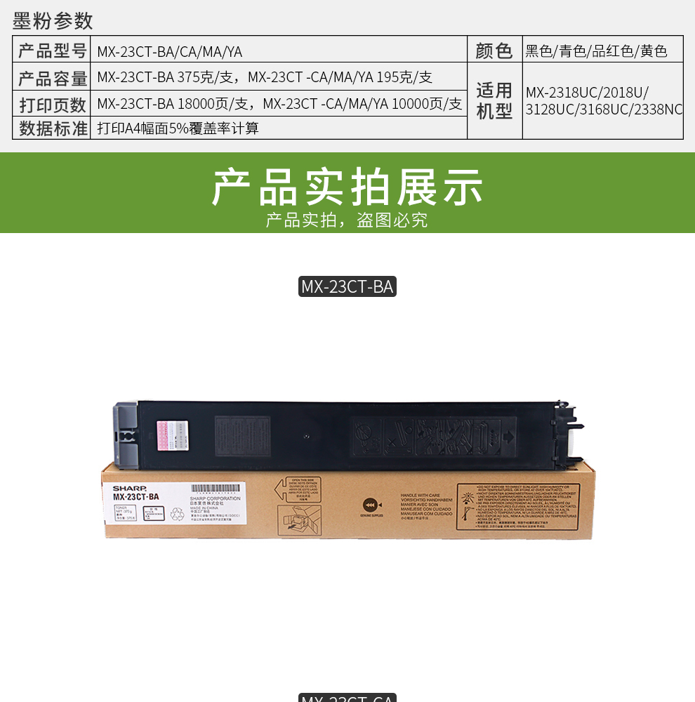 • 商品名稱:夏普(SHARP)MX-23CT-MA紅色粉 適用于MX-2318UC/2018U/3128UC/3168UC/2338NC