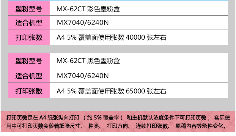 • 商品名稱:夏普(SHARP)MX-62CT-YA黃色粉 適用于MX7040/6240N