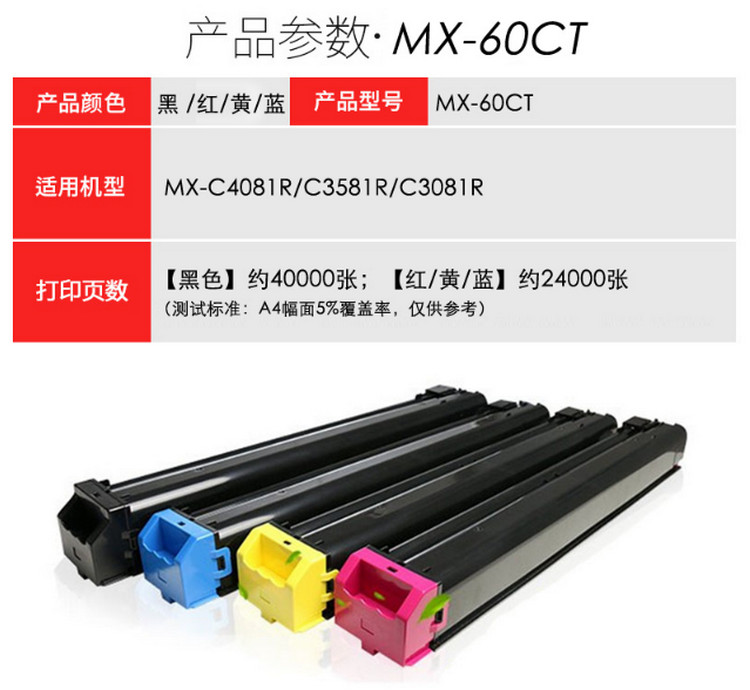 • 商品名稱:夏普(SHARP)MX-60CT-BA黑色粉 適用于MX-C3081R/C3581/C4081
