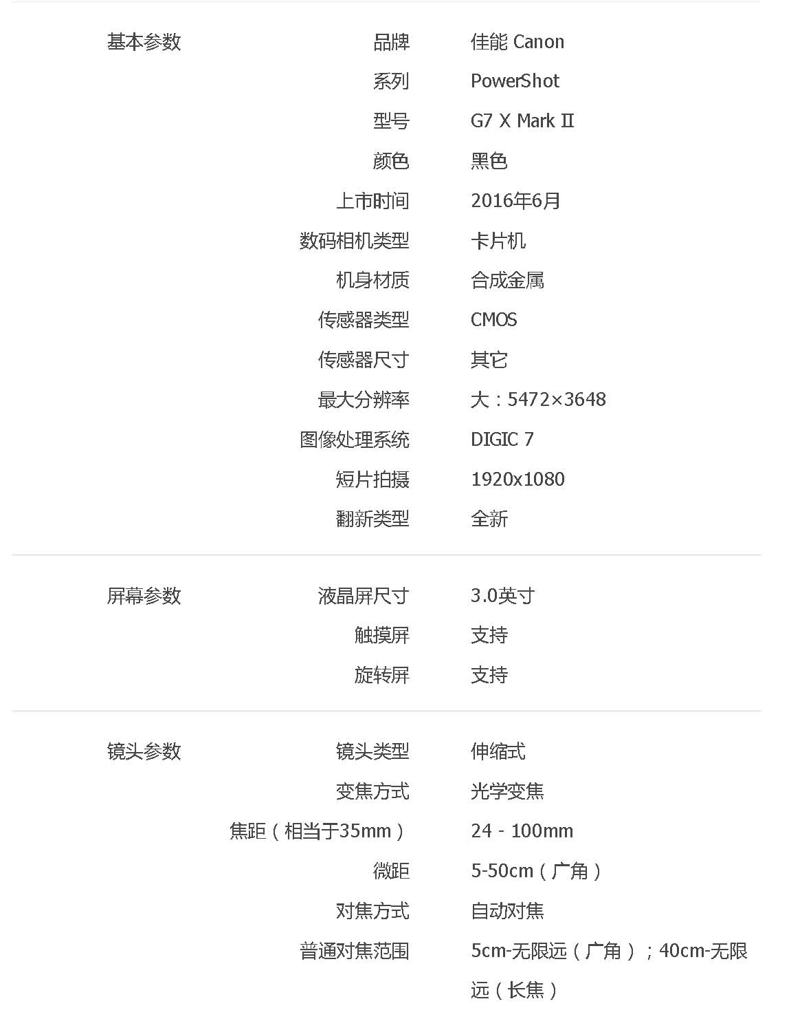 • 商品名稱(chēng):佳能(Canon)PowerShot G7 X Mark II 數(shù)碼相機(jī)