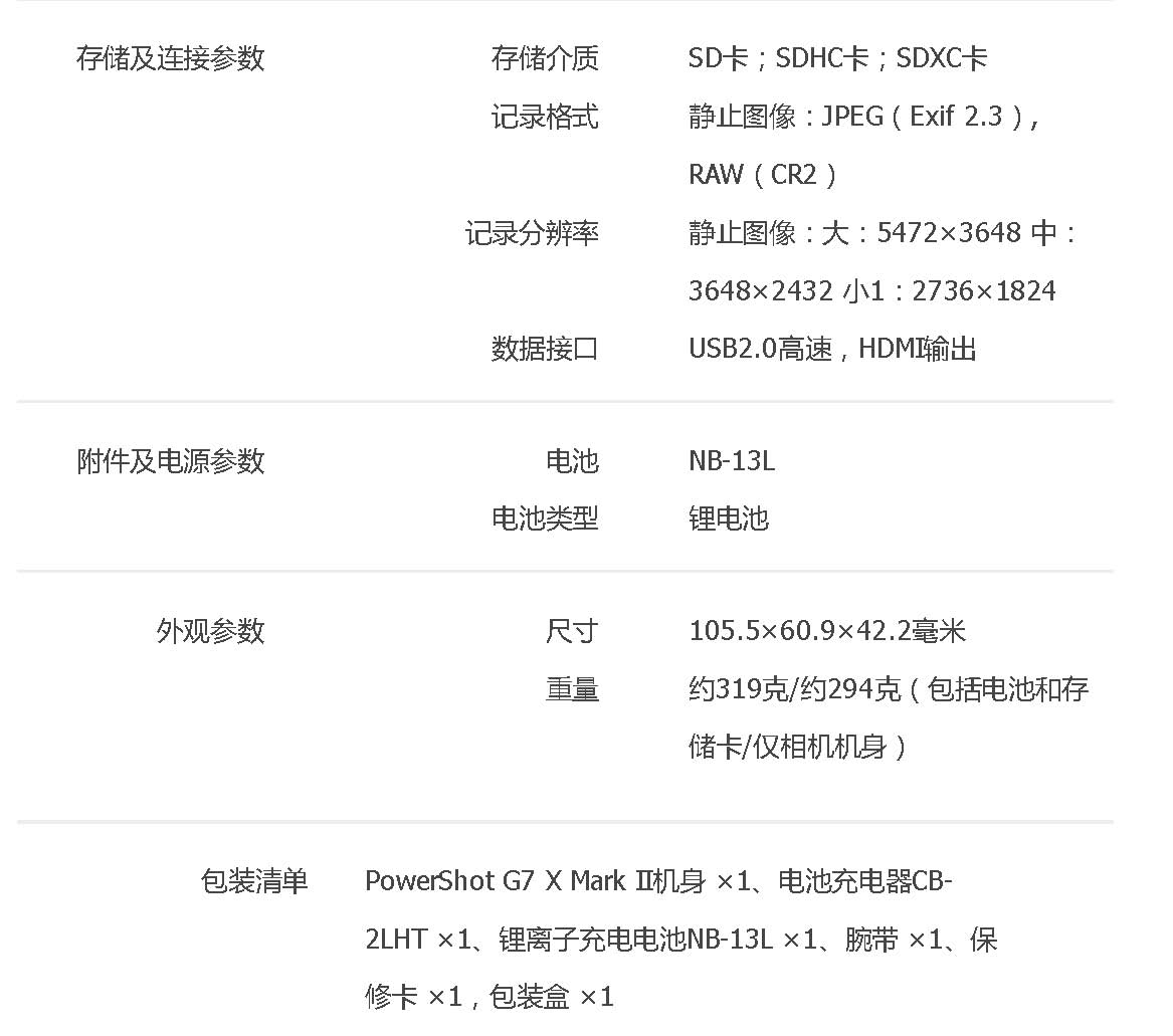 • 規(guī)格:PowerShot G7 X Mark II數(shù)碼相機(jī)