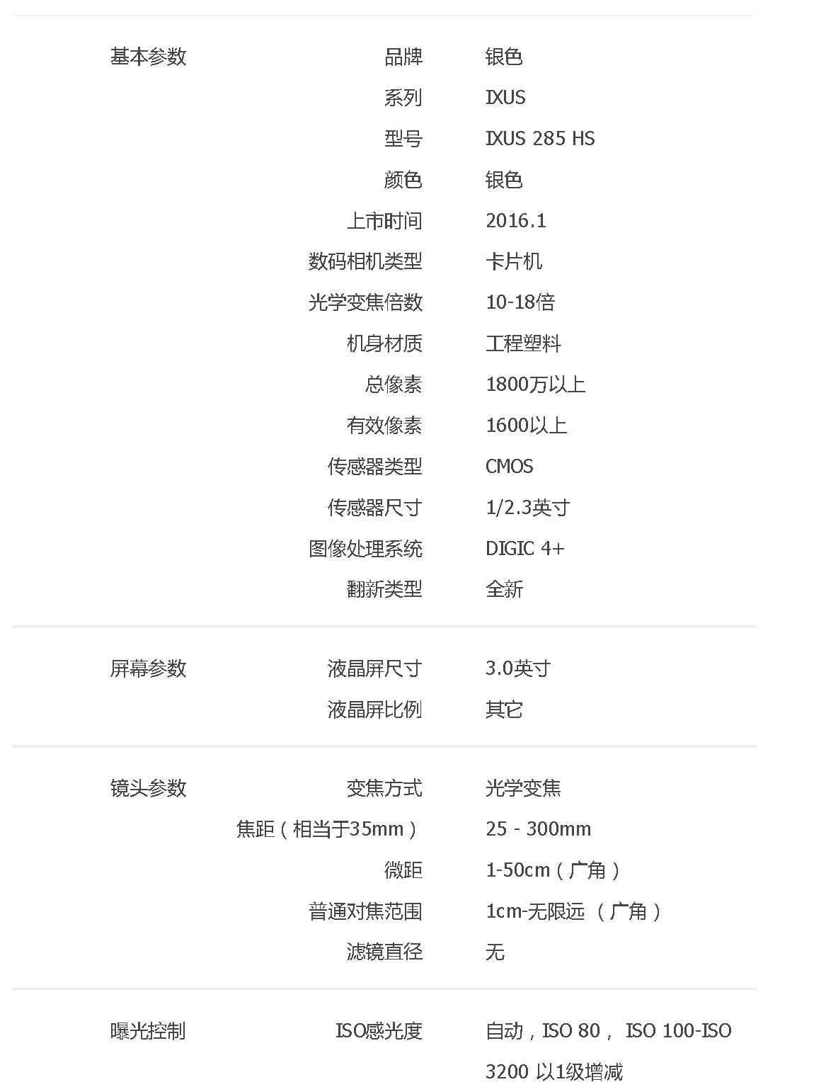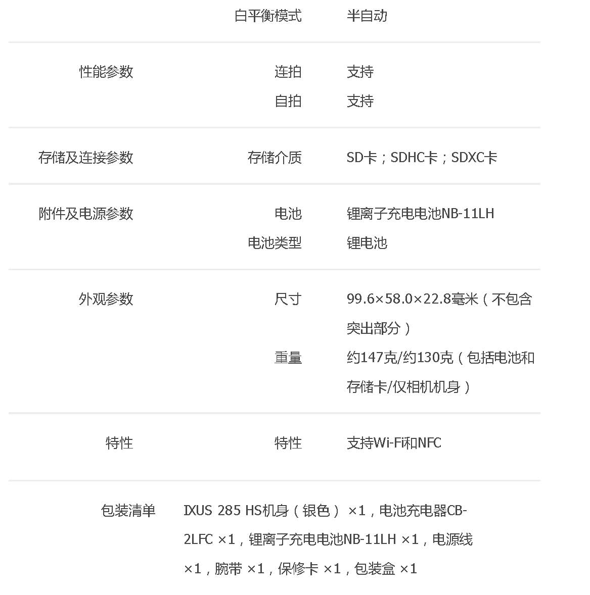 • 規(guī)格:IXUS 285 HS數(shù)碼相機(jī)