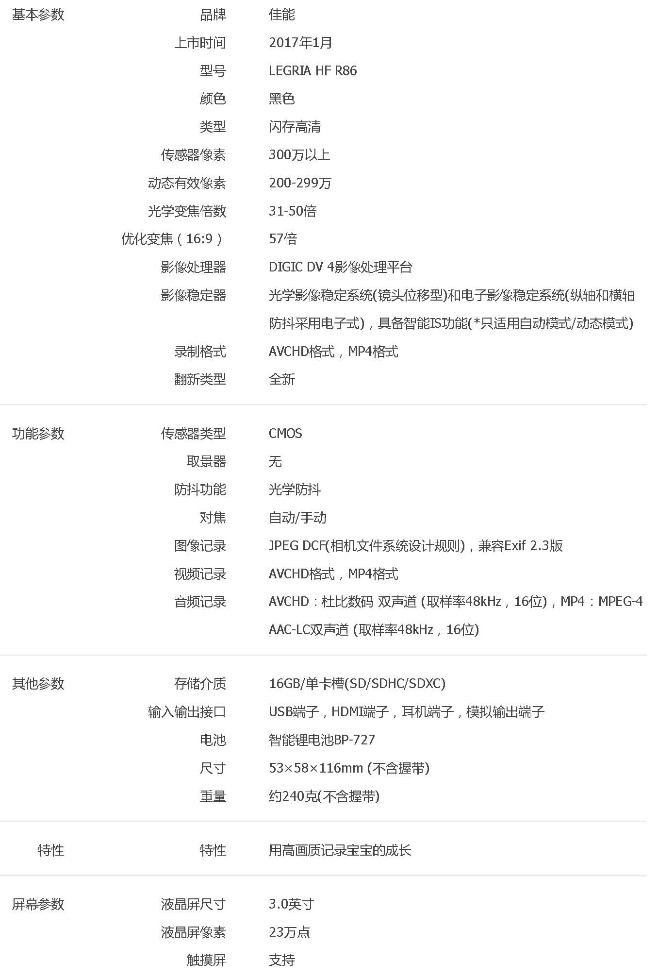 • 商品名稱:佳能(canon)LEGRIA HF R86 高清數(shù)碼攝像機(jī)+包、128G內(nèi)存卡、相機(jī)架