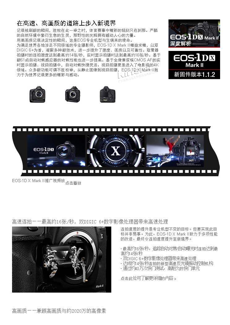 • 商品名稱:佳能(Canon)EOS-1D X Mark II 單機 全畫幅單反相機