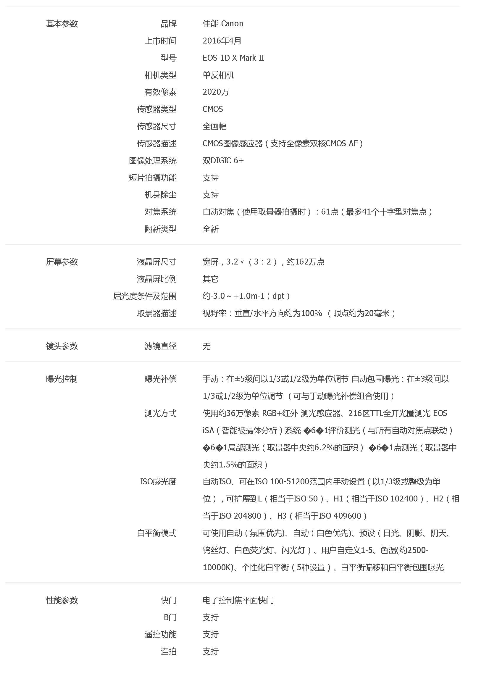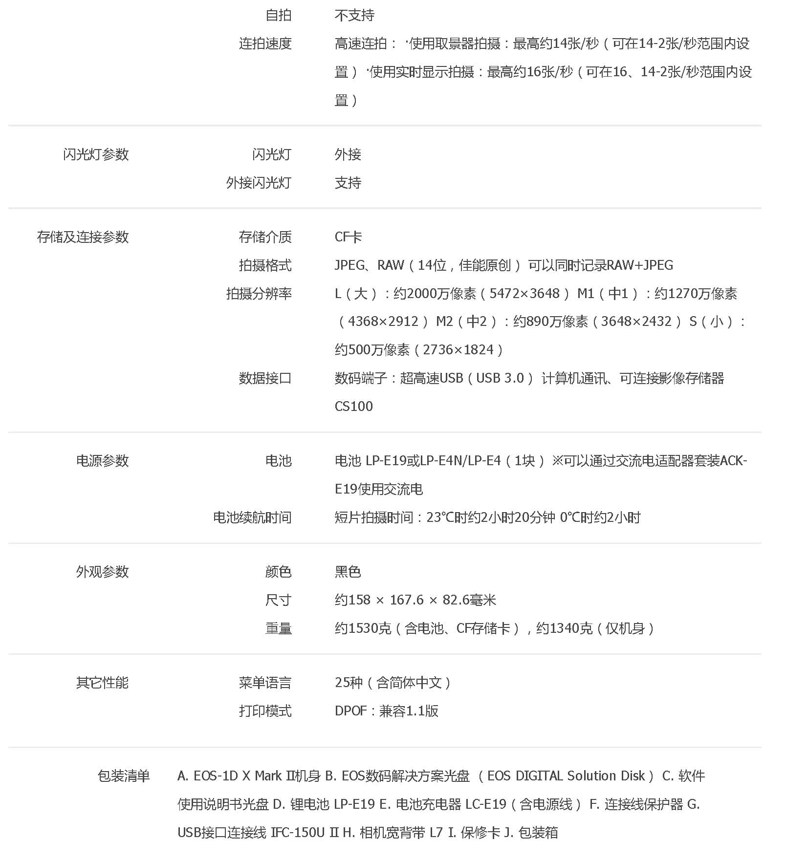 • 規(guī)格:EOS-1D X Mark II 單機