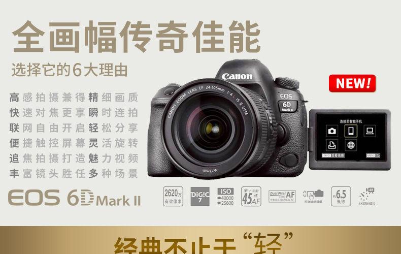 佳能(Canon)EOS 6D Mark II 全畫(huà)幅單反相機(jī) 單機(jī)身 不含鏡頭