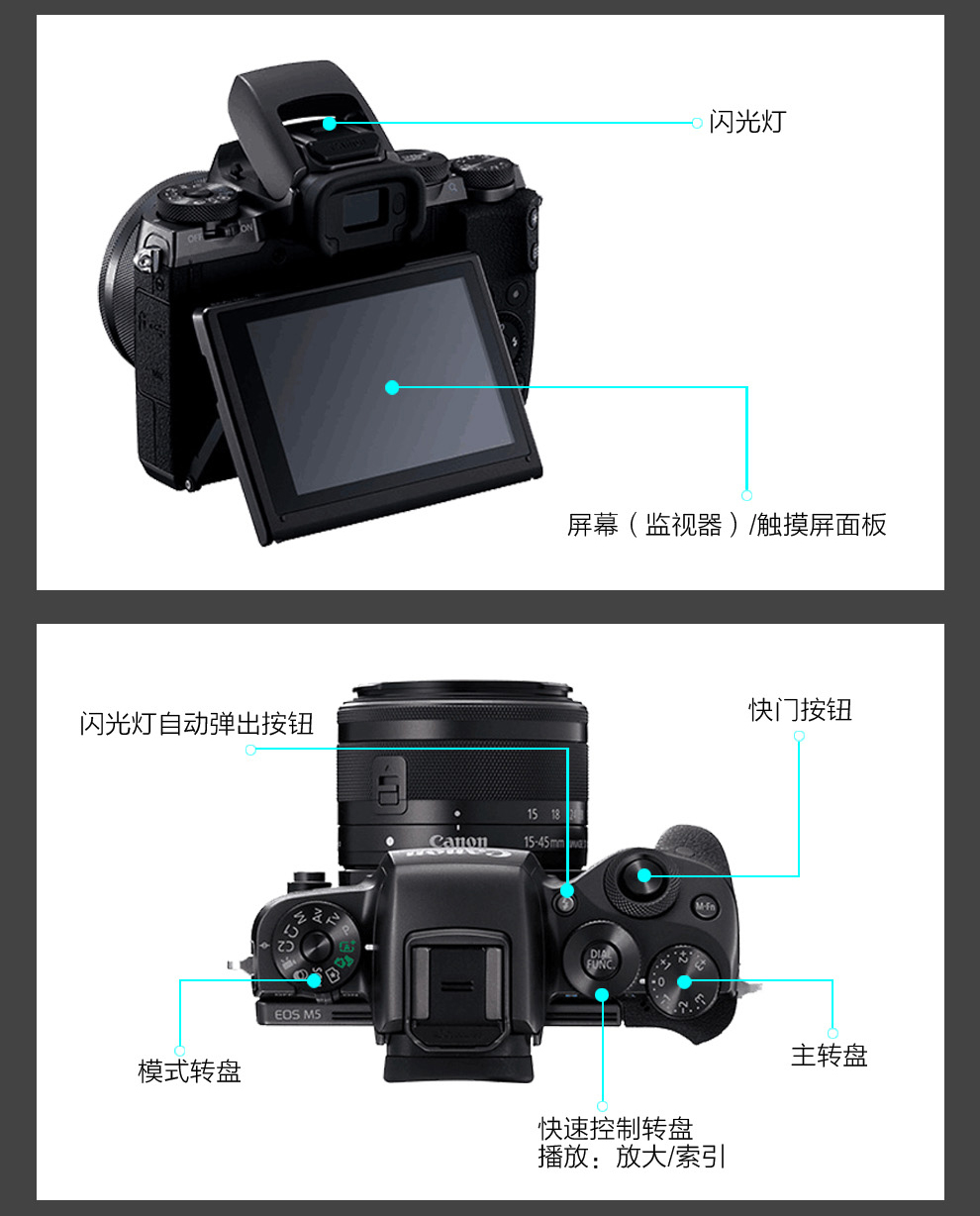 • 商品名稱:佳能(Canon)EOS M5 套機(jī) ( EF-M 18-150mm f/3.5-6.3 IS STM) 微單相機(jī)