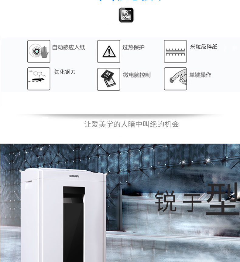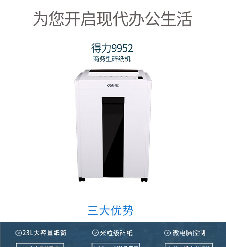 • 商品名稱:得力(deli)9952 機密衛(wèi)士系列智能專業(yè)辦公碎紙機(適用大型辦公室/碎紙/碎卡)