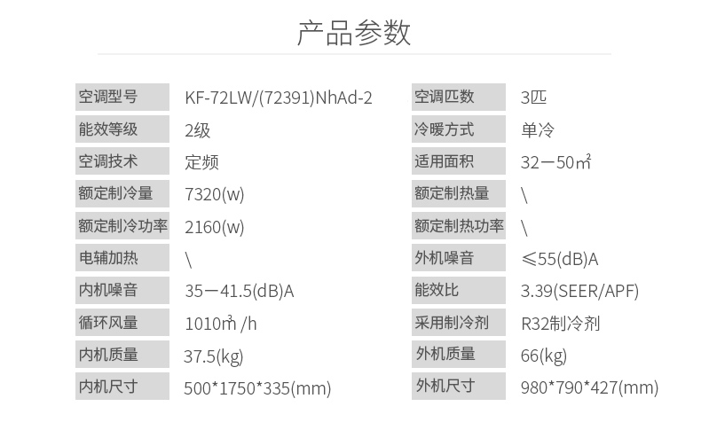 • 規(guī)格:KF-72LW/(72391)NhAd-2 立柜式空調(diào)