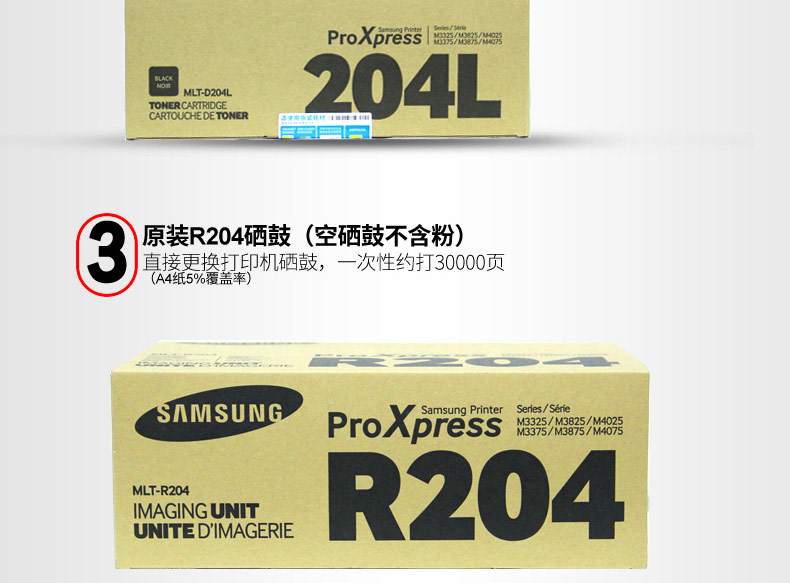 • 商品名稱:三星(SAMSUNG) 大容黑色粉盒MLT-D204L 適用于M3325ND 3825 3875