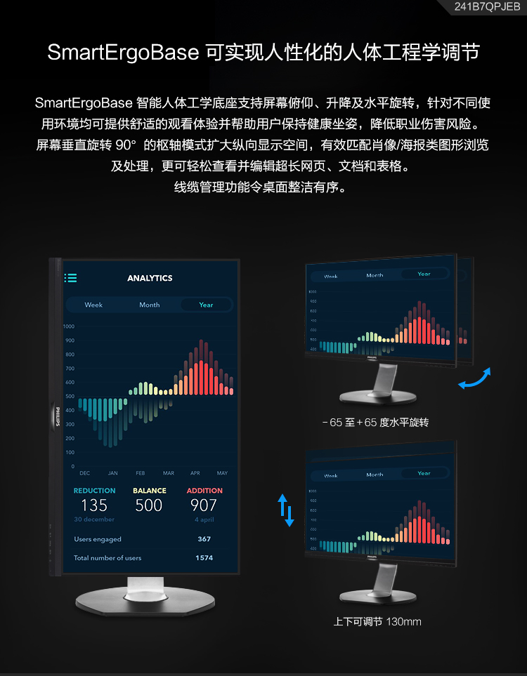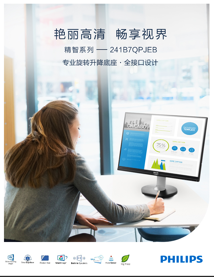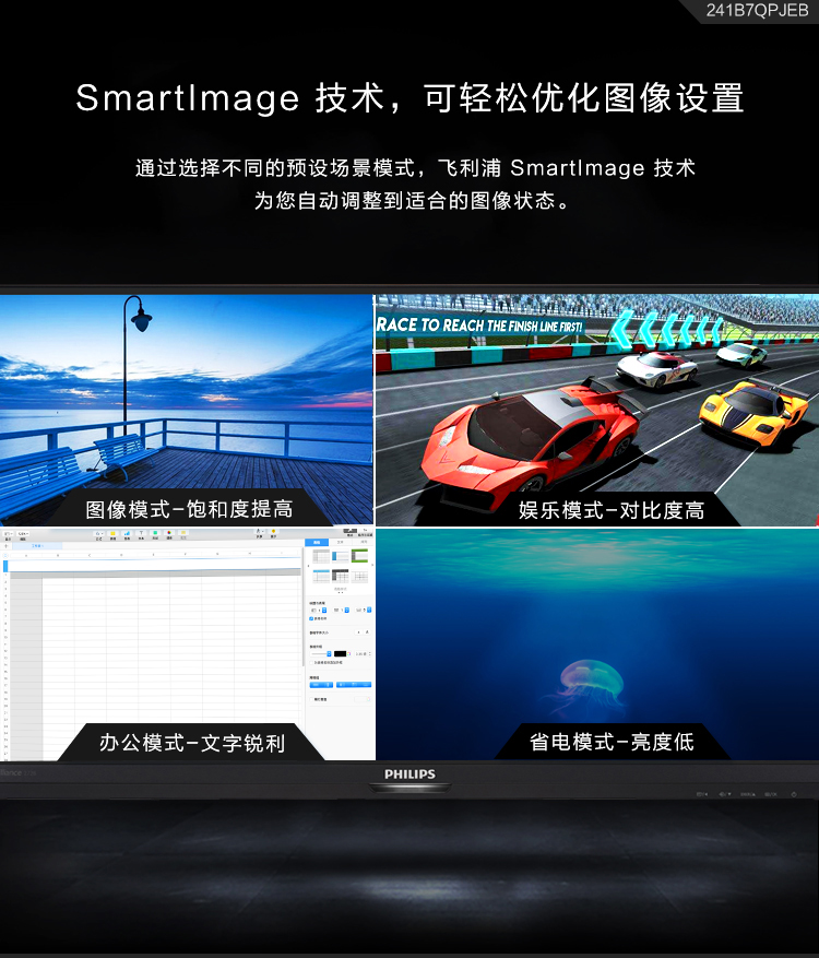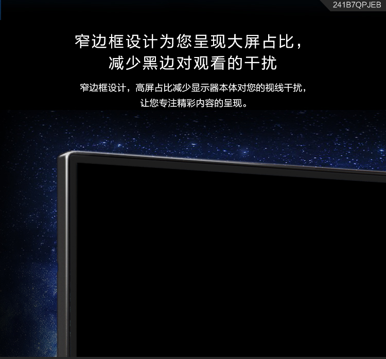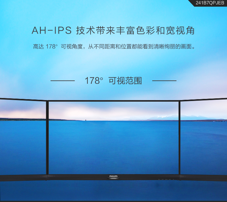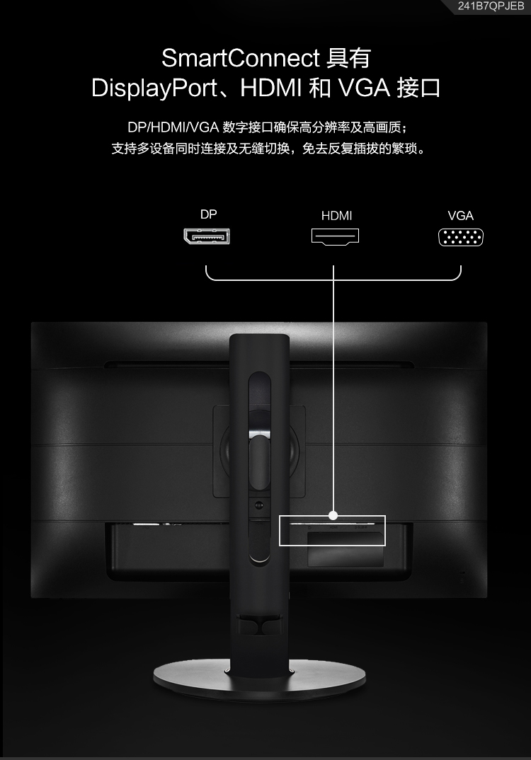 飛利浦(Philips)241B7QPJEB液晶顯示器23.8寸VGA/HDMI/DP/USB3.0*2接口分辨率1920×1080