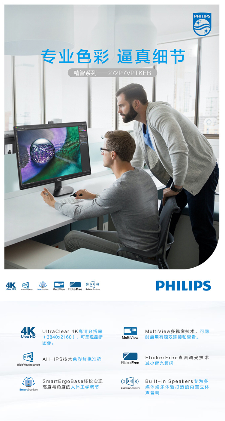• 商品名稱:飛利浦(Philips)272P7VPTKEB液晶顯示器27寸VGA/HDMI/DP*2/USB3.0*3接口分辨率3840×2160