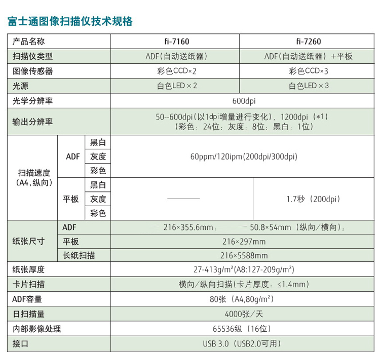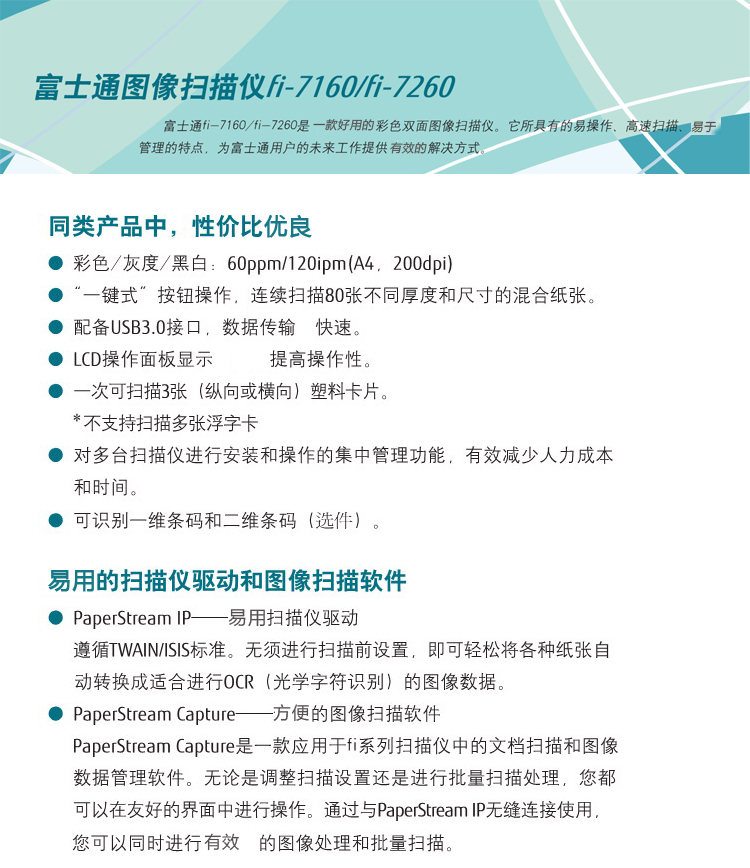 • 商品名稱:富士通(Fujitsu)圖像掃描儀Fi-7260 A4幅面自動饋紙式高速文檔掃描儀+平板