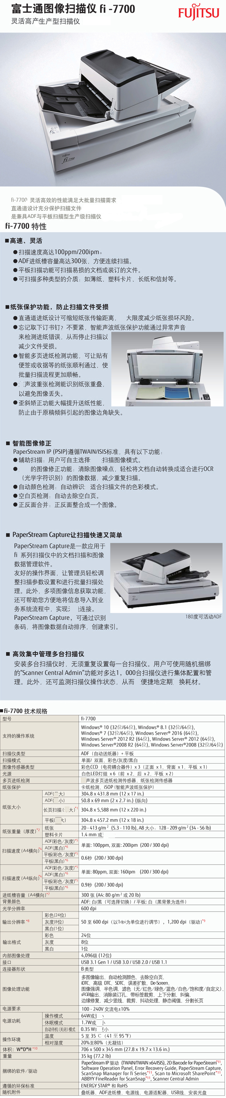 - 商品名稱:富士通(Fujitsu)圖像掃描儀Fi-7700S A3幅面自動(dòng)饋紙式高速文檔掃描儀+平板