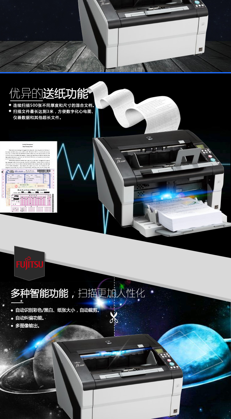 • 商品名稱:富士通(Fujitsu)圖像掃描儀Fi-6400 A3幅面自動(dòng)饋紙式高速文檔掃描儀+手動(dòng)送紙