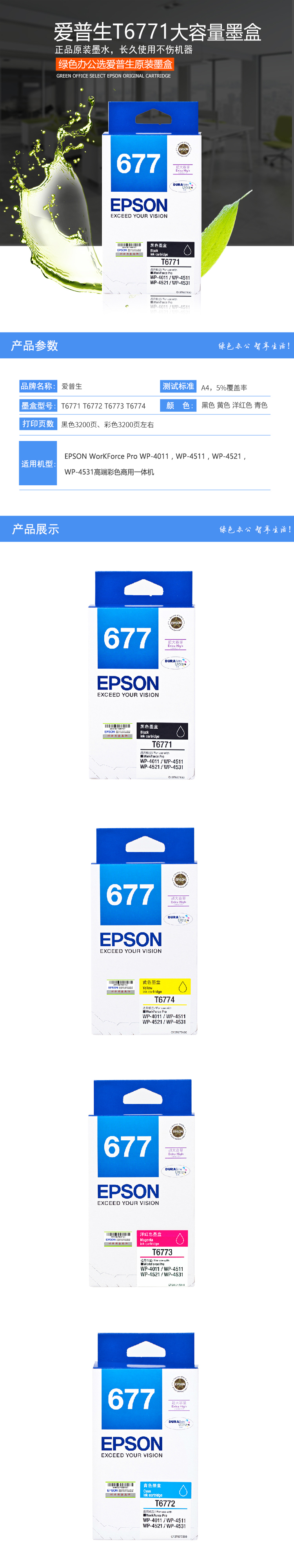 • 商品名稱:愛普生(EPSON) T6773紅色墨盒 適用于WP-4011 4511 4521 6773