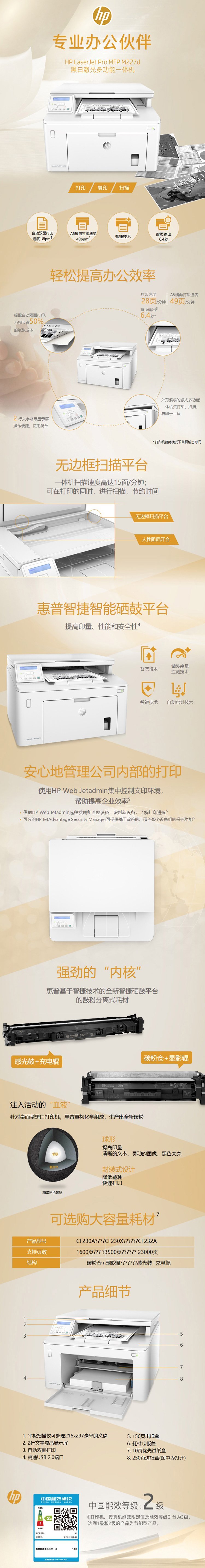• 商品名稱:惠普(HP)LaserJet Pro MFP M227d 黑白多功能一體機