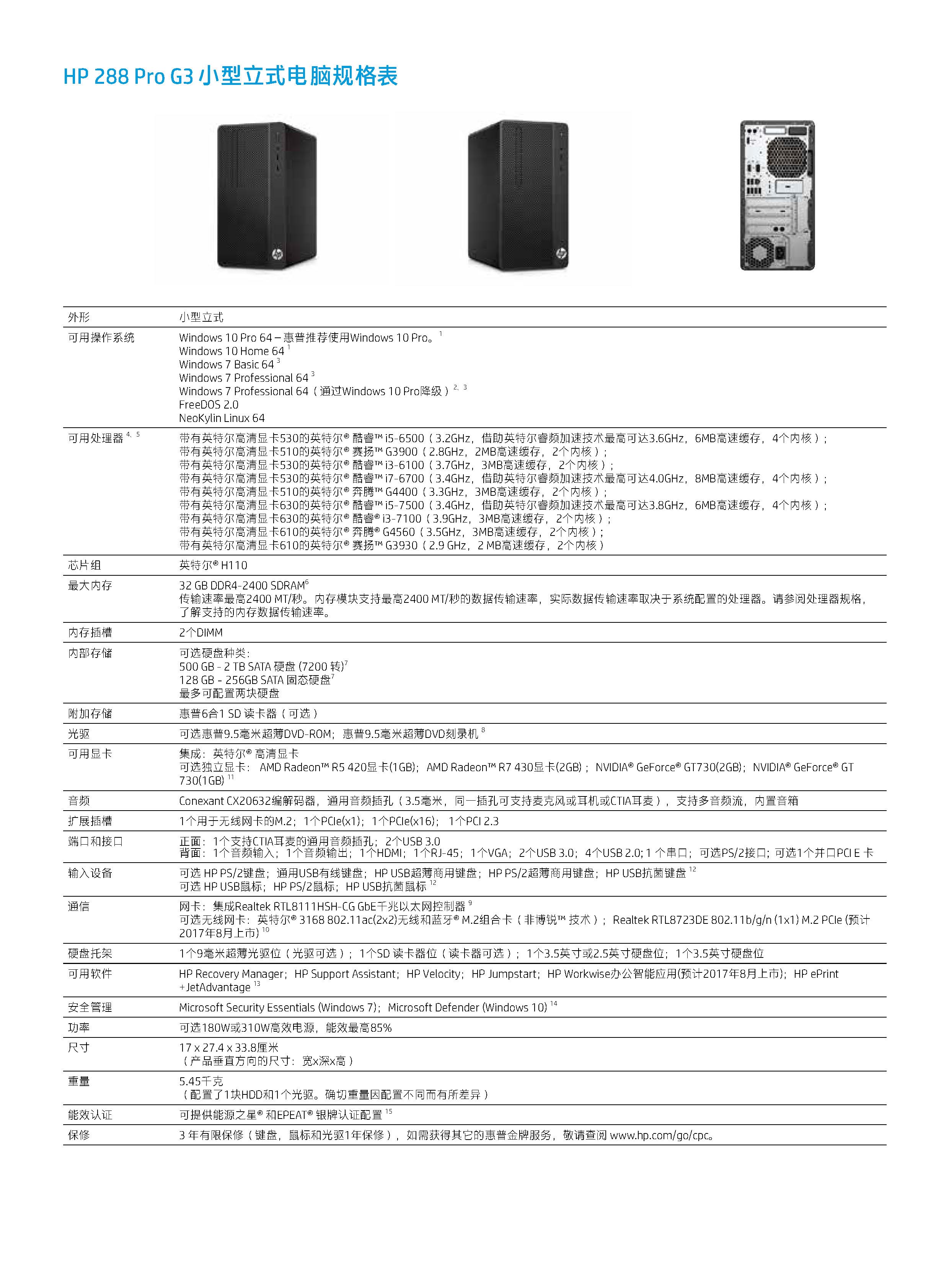 惠普(HP)288 Pro G3 MT臺(tái)式計(jì)算機(jī) i5-7500/4Gx2條/1TB/超薄DVDRW/Windows 10 Home 64位/3年保修 23.8寸顯示器