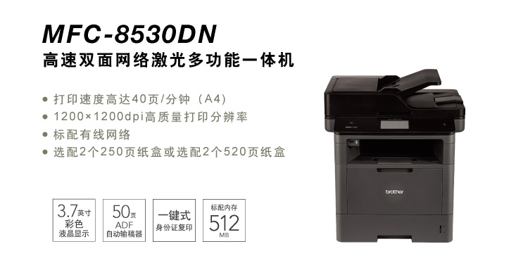 兄弟(brother)MFC-8530DN 高速雙面網(wǎng)絡(luò)激光多功能一體機(jī)(打印/復(fù)印/掃描/傳真)