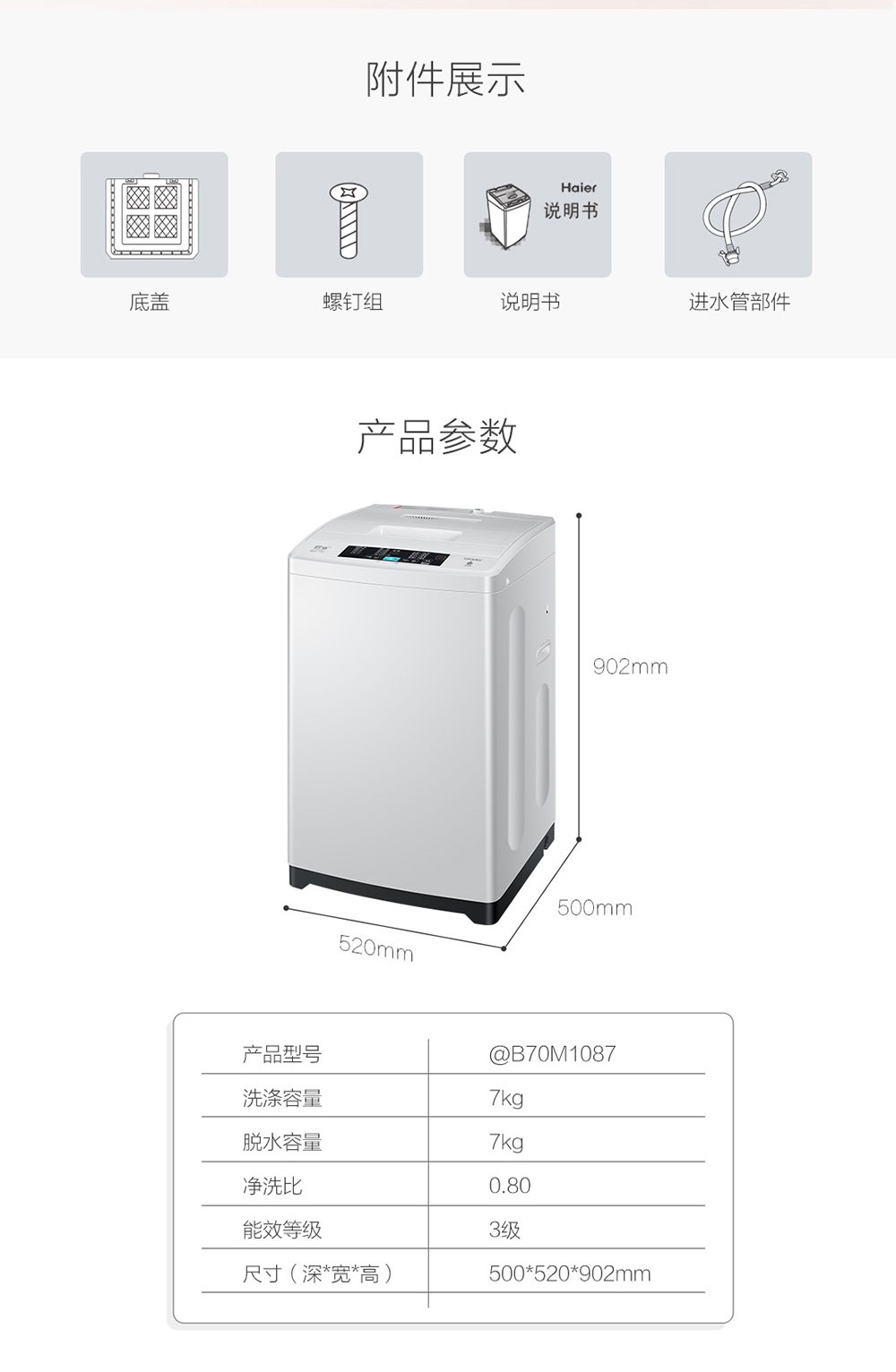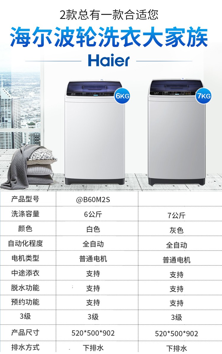 • 商品名稱:海爾(Haier)統(tǒng)帥6/7/8公斤全自動(dòng)波輪洗衣機(jī) 家用小型帶甩干 智能 6KG全自動(dòng)洗衣機(jī)