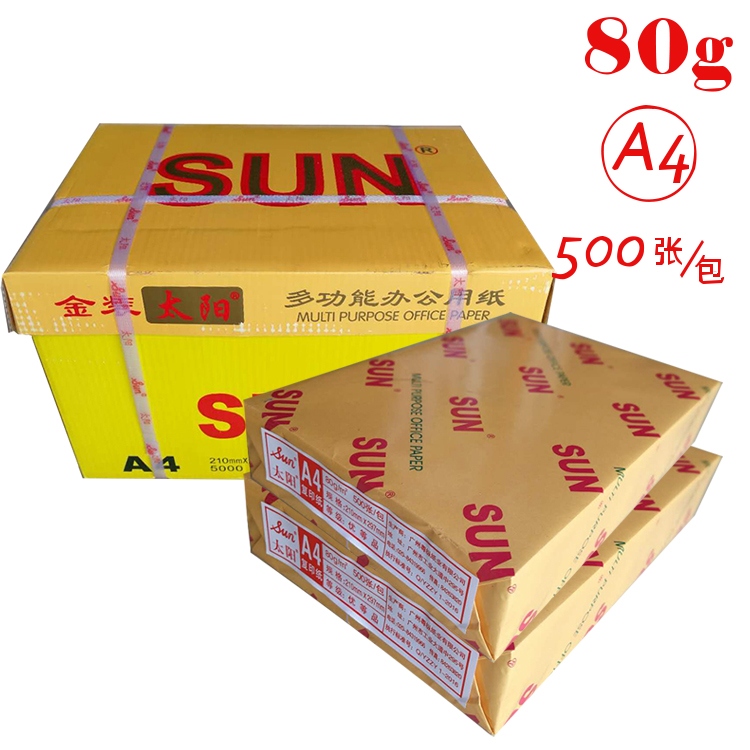 • 商品名稱:太陽(SUN) A4 80G 復印紙 500張/包 10包/箱 金黃包裝