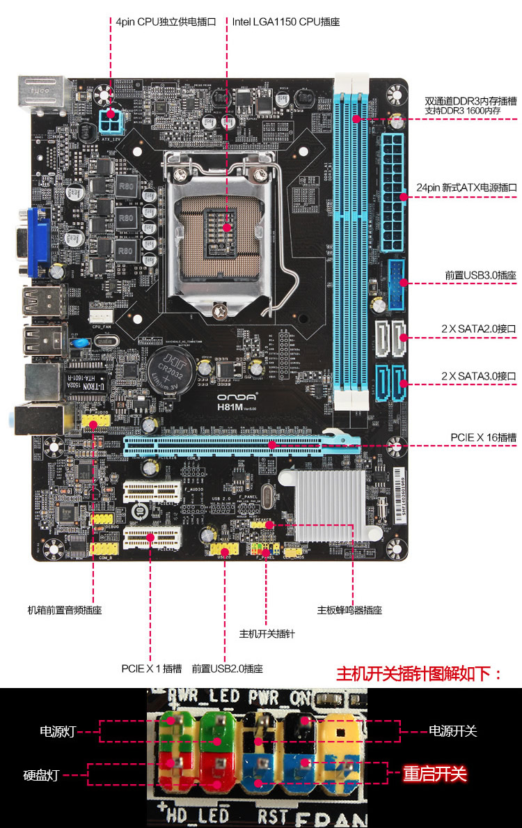 昂達(dá)(onda)H81M (Intel H81/LGA1150)主板(kj)