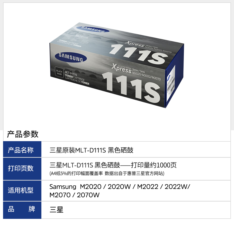 • 商品名稱:三星(SAMSUNG)原裝MLT-DC111S硒鼓適用SL-M2021W M2071 2071HW(kj)