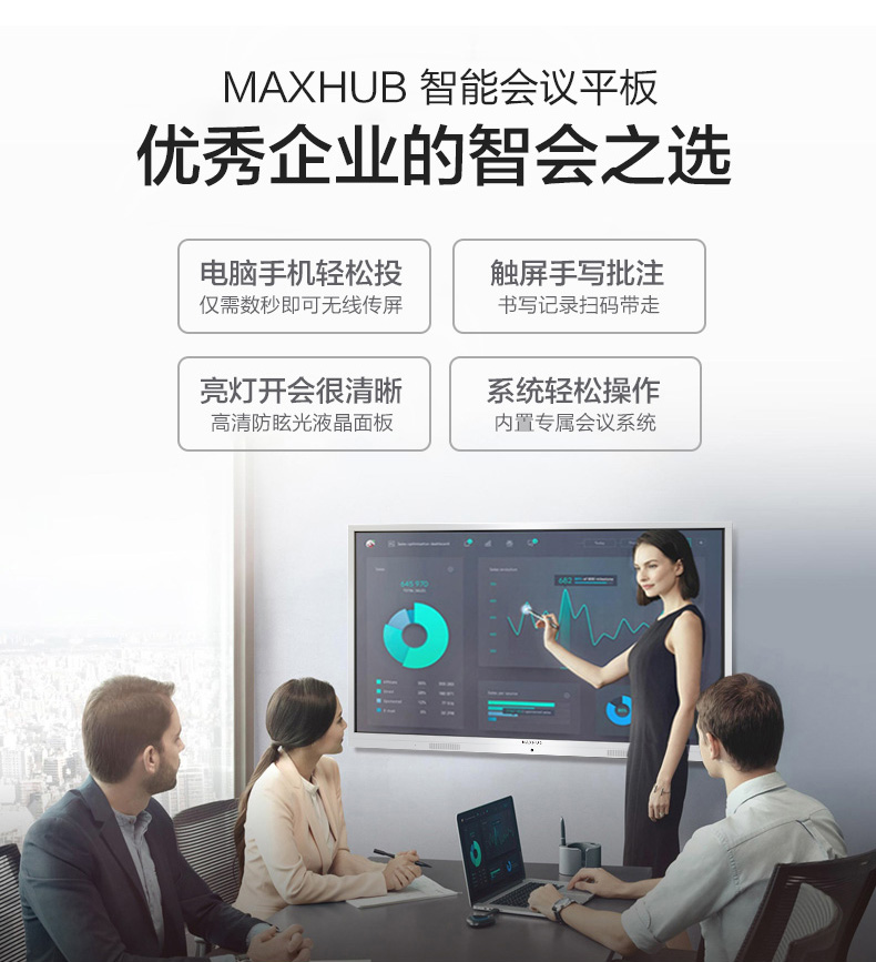 65",4K 超高清顯示屏 ,防眩鋼化玻璃,高精度紅外觸控技術(shù),內(nèi)置 800W 攝像頭, 陣列麥克風(fēng),三支毛氈筆。;標配:Android 7.0,可選配Windows 10 的PC模塊。