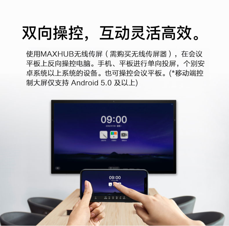 86", 4K超清顯示屏 ,電容+電磁雙觸控,AG順滑鋼化玻璃,內(nèi)置 三顆1200W 攝像頭,陣列麥克風,標配:壁掛板,I5PC模塊(Windows10企業(yè)版),二支電磁筆