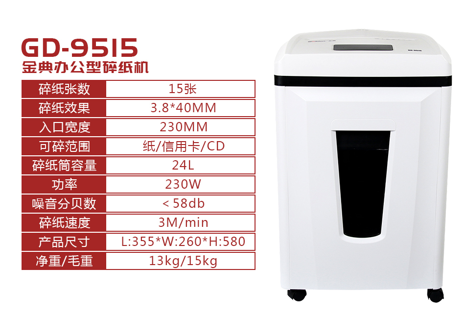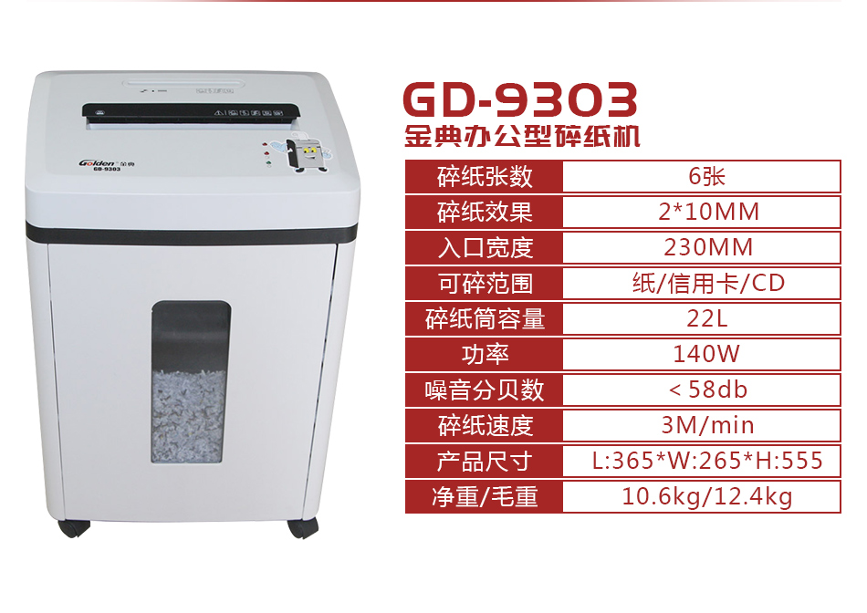 • 商品名稱:金典(GOLDEN) GD-9305 商用辦公碎紙機(jī) 4級(jí)保密電動(dòng)家用粉碎機(jī) 可碎紙/信用卡/CD 新款碎紙機(jī) (kj)