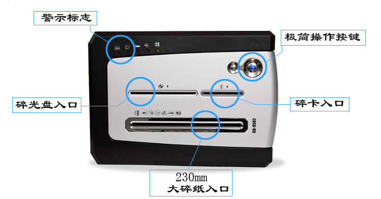 金典(Golden) GD-9502 碎紙機(jī)辦公家用碎卡機(jī) 高保密三入口(單次6張/碎光盤/靜音) (kj)