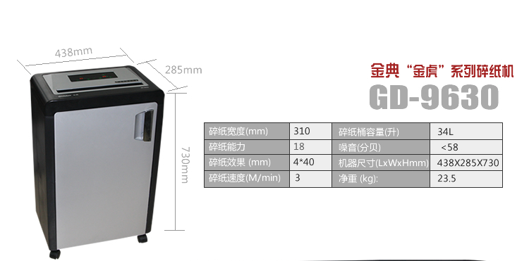 金典(GOLDEN) GD-9630 碎紙機(jī) 碎紙機(jī)辦公 段裝碎紙機(jī)靜音(kj)