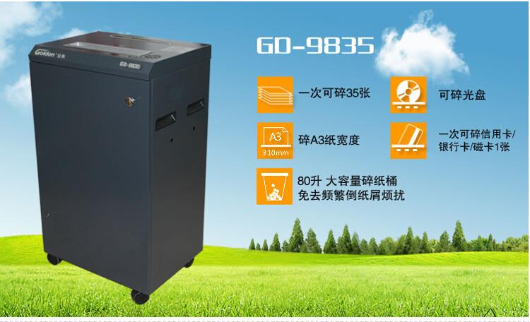 • 商品名稱:金典(Golden) GD-9835 碎紙機(jī)辦公碎紙機(jī)高保密靜音碎卡機(jī) A3碎紙(單次35張/碎光盤)(kj)